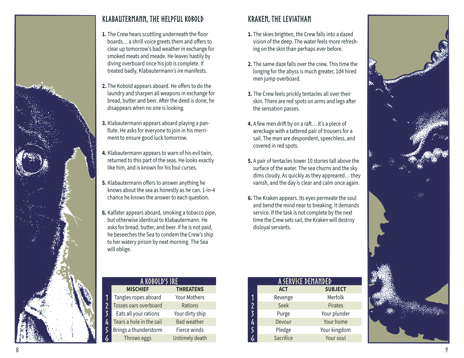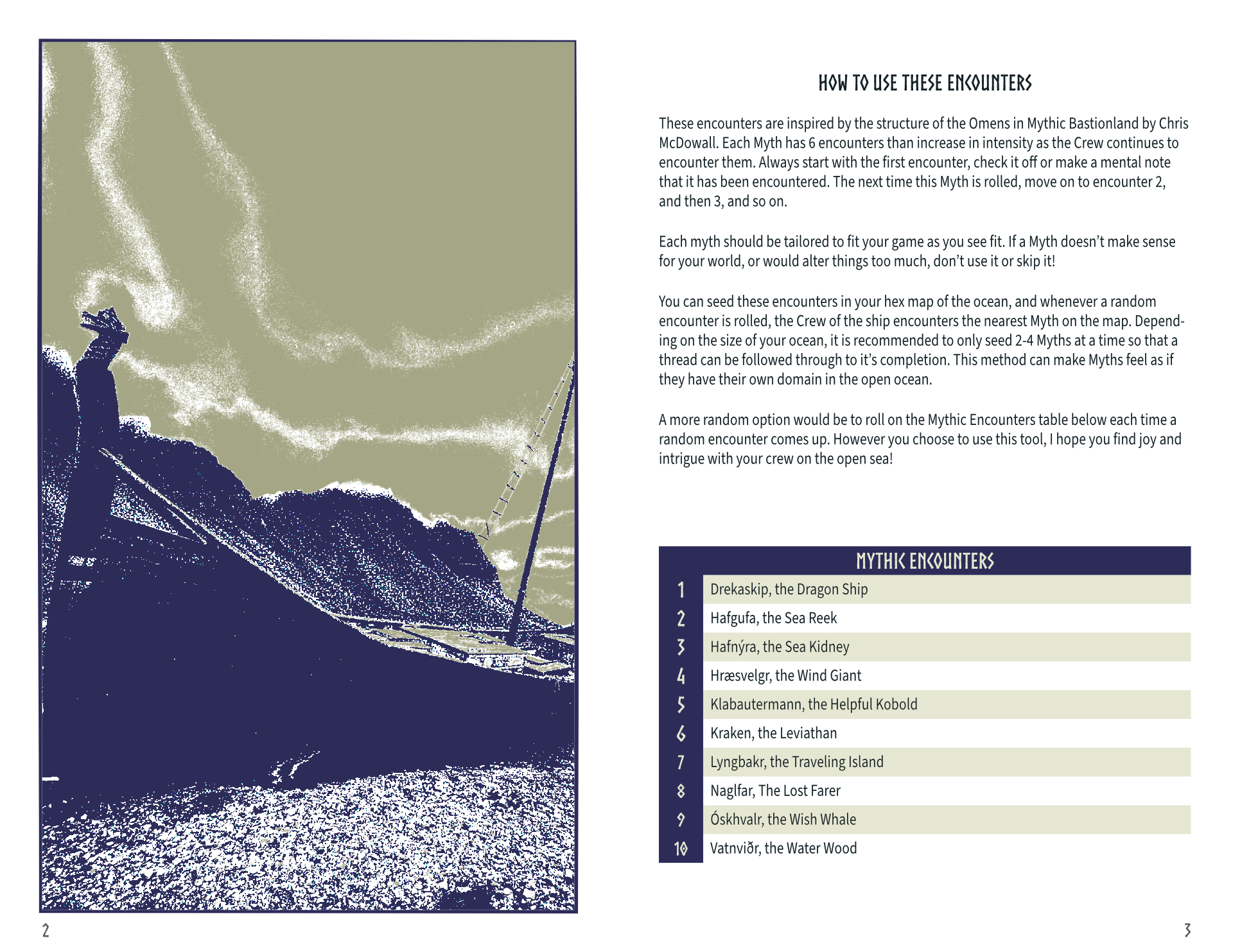 Raiders on Strange Tides is a list of Myths with multiple encounters that increase in intensity each time you encounter them! For use in the open sea or when sailing between adventures.